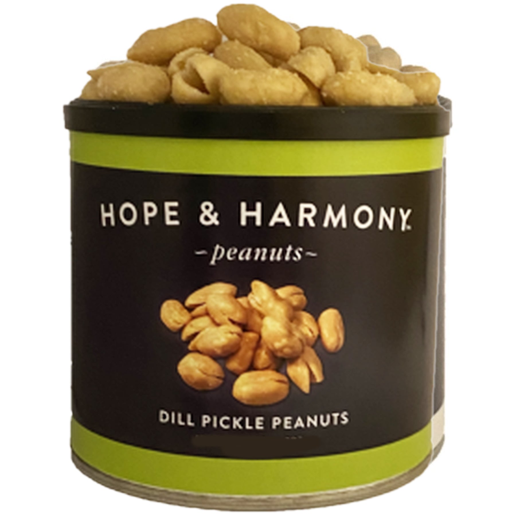 Hope and Harmony Farms Dill Pickle Virginia peanuts are a delicious spin off of an American staple, dill pickles. They pack a flavorful punch that will be sure to satisfy your taste buds. In each crunchy bite, the flavors of salt, garlic, and dill fill your pallet which leaves your mouth watering for more. Keep in mind, once you pick them up, it is hard to put them down!