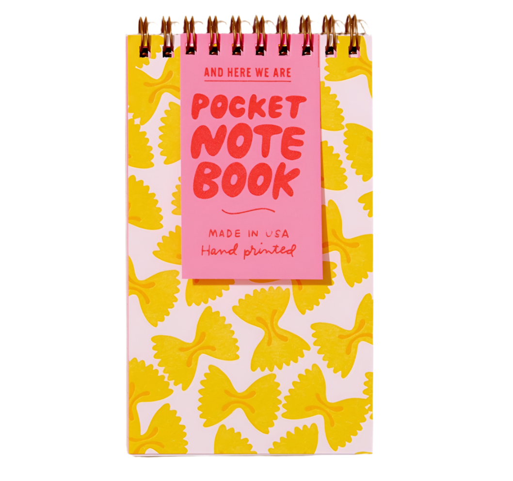 Call it farfalle or bowtie, this handy little pocket-sized notebook is decorated with everyone's favorite pasta.