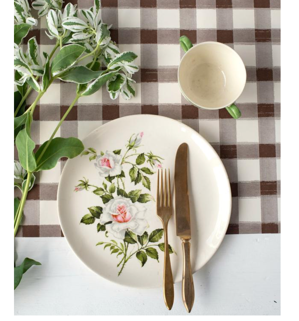 brown painted check: paper table runner