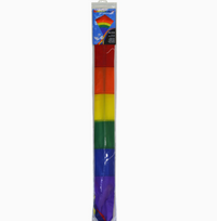 hese single-line kites are great for the novice to intermediate kite enthusiast making them fun for the whole family! - Ripstop fabric and fiberglass rods. - Applique design in a rainbow spectrum. - (3) attached 19' color-coordinated tails. - Easy to assemble. - Kite line with handle and kite bag included. - Recommended wind range: 6 to 20 MPH