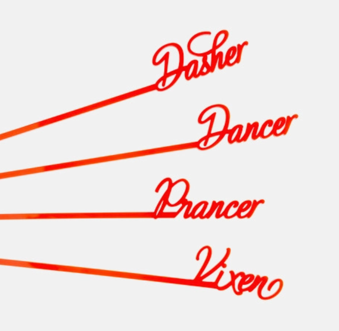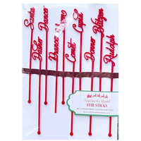 holiday stir sticks also let you know which drink is yours. Comes as a set of 10 with all the reindeer names and Santa! Made of red lucite, they are hand washable and reusable