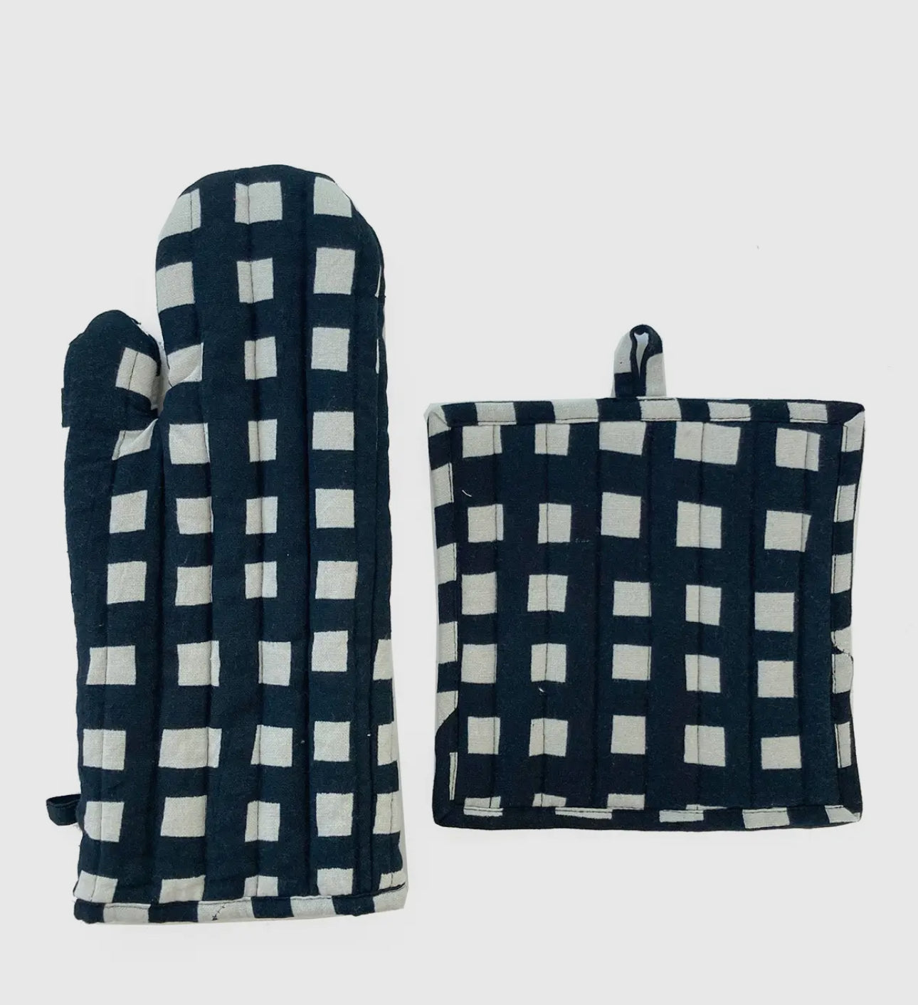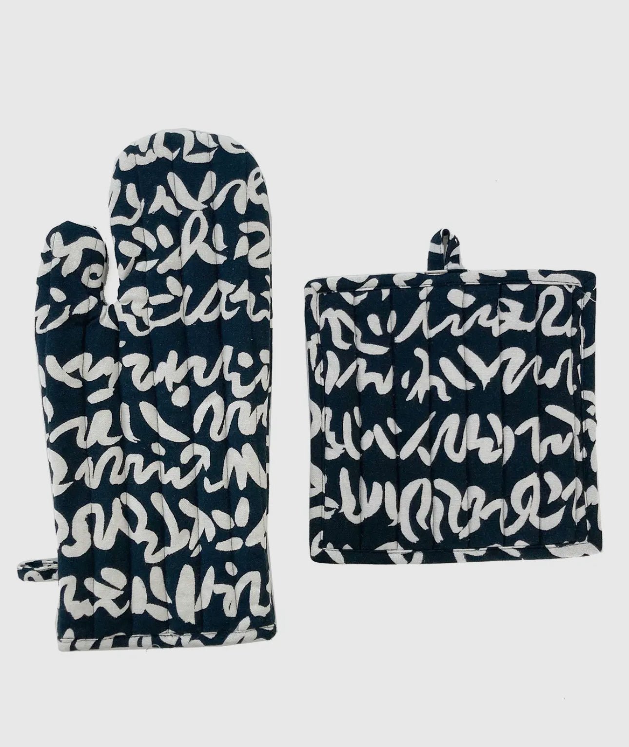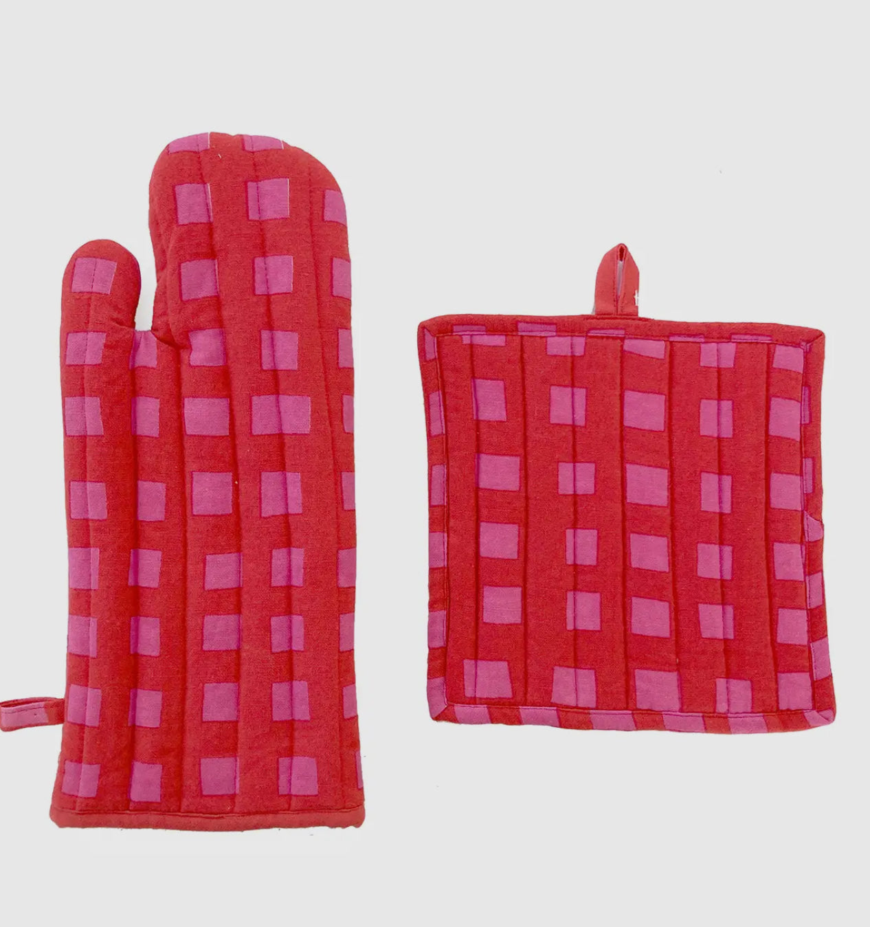 These oven mitt and potholder sets feature the fresh, hand painted designs by Donna Gorman. The oven mitt is extra-long (14" x 6") by design to protect your arms when cooking & baking. The potholder measures 8.25" x 8.25". The set comes with one oven mitt and one potholder. Both are channel quilted from 100% cotton fabric with polyester wadding.