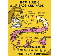 - Not Your Ordinary Bag: Drenched in Blue Q art & wit, this bag is woven from 95% recycled plastic made from used grain sacks. Easy-to-wipe-clean too!